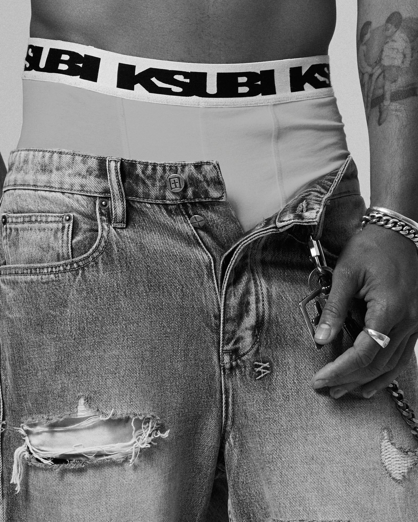 The Royalty Boxer Brief Grey is a regular fit boxer short with an elastic waist band. Made from a premium grey stretch cotton and finished with a printed signature t-box on the left thigh & 4x4 branding below the back waistband. These boxers feature a custom jacquard elastic waist band with black Ksubi SOTT logo.